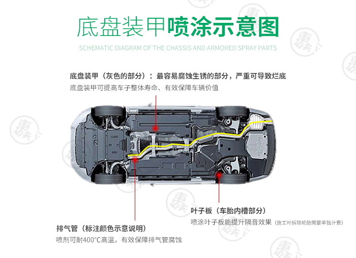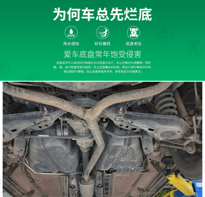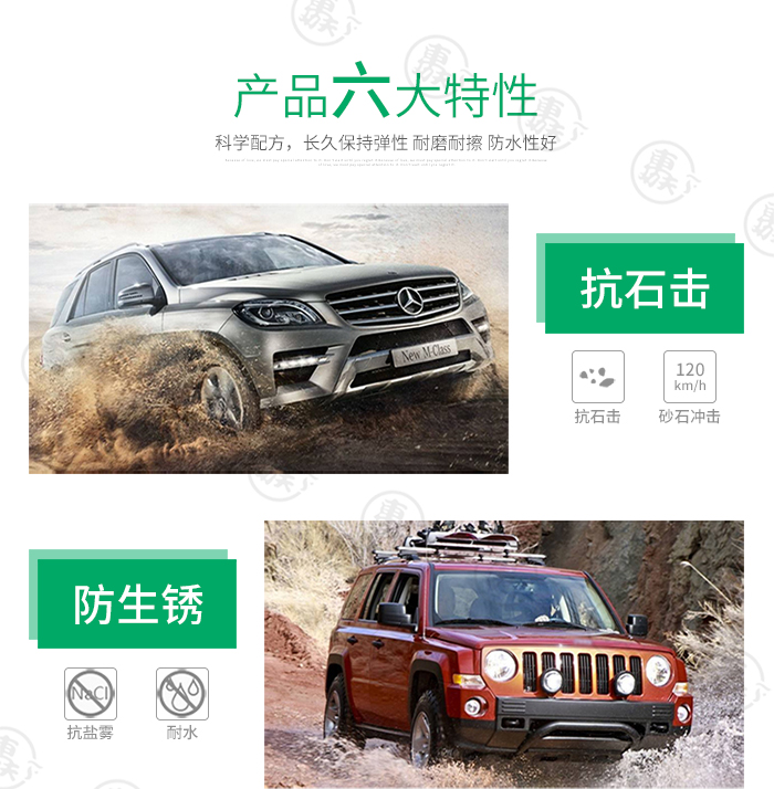 抗石擊、防生銹、隔音降噪、減震防護、防拖底、隔熱御寒